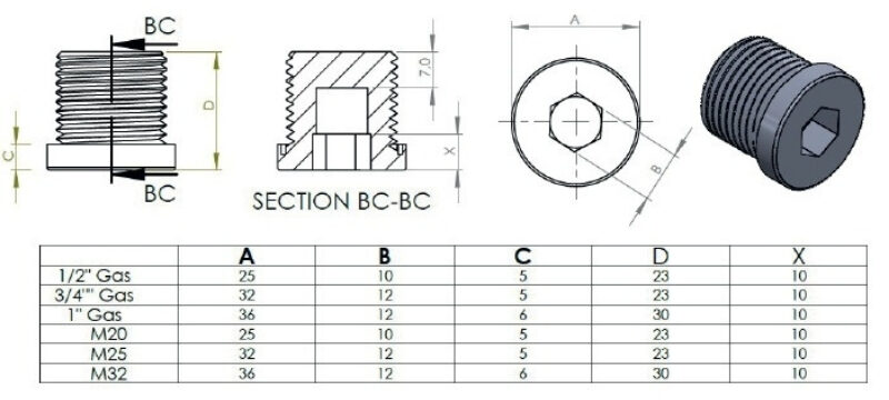 | 3/4″s NPT | 26.74 | 18 | 10 | 17 | 17 | 22 |